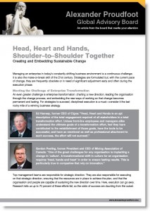 So, for companies wishing to be part of the 30% of organisations whose strategy is executed and the change programme a success, capturing heads, hearts and hands may just tip the odds of success in their favour.