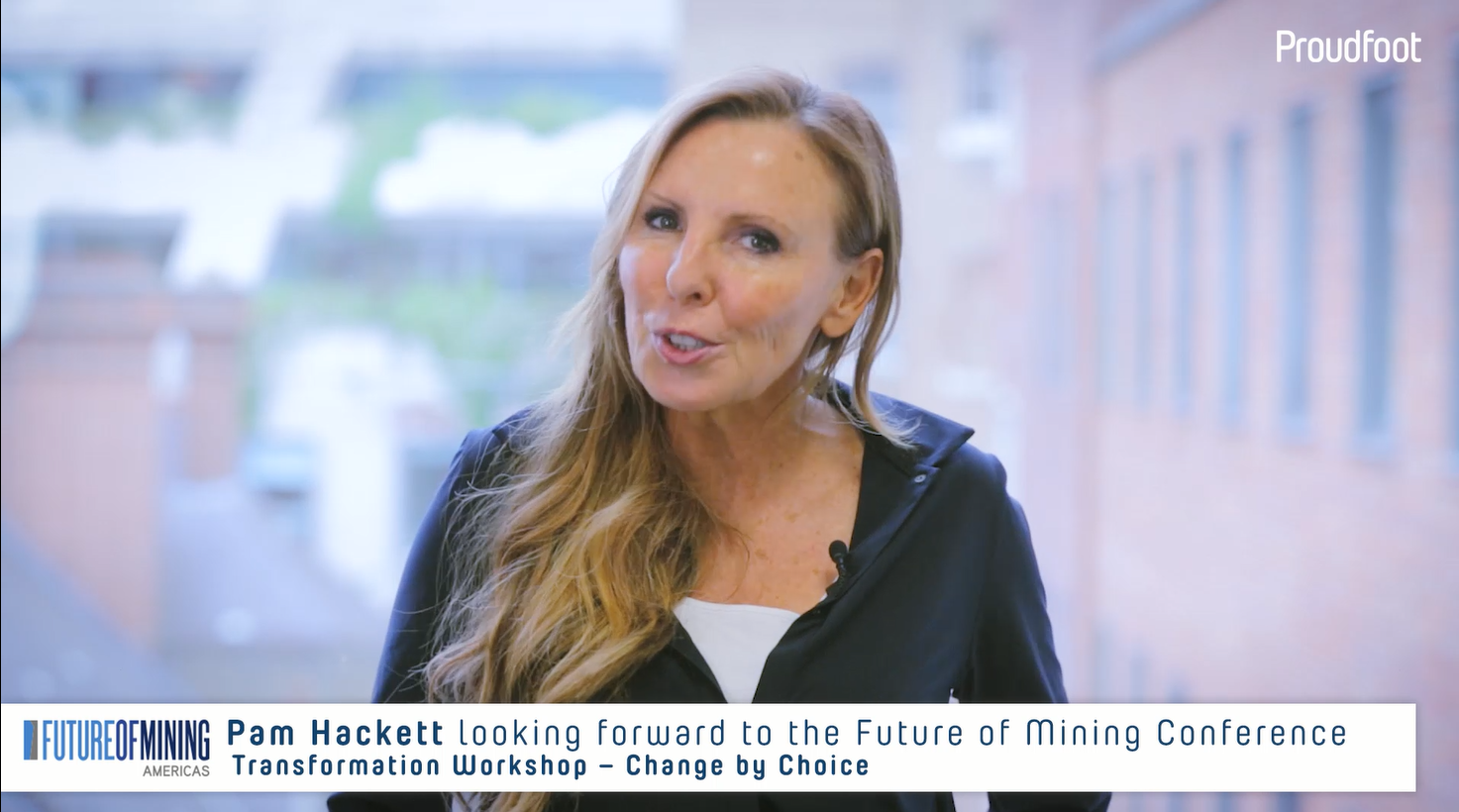 Pamela Hackett, Proudfoot CEO discussing how to create change by choice within your organization. How do you get your transformation programs to succeed? She will be leading a Masterclass on Transformation during an invitation-only Knowledge Exchange at 1 pm, CST on the 29th at the Future of Mining Conference Americas in Denver, CO.